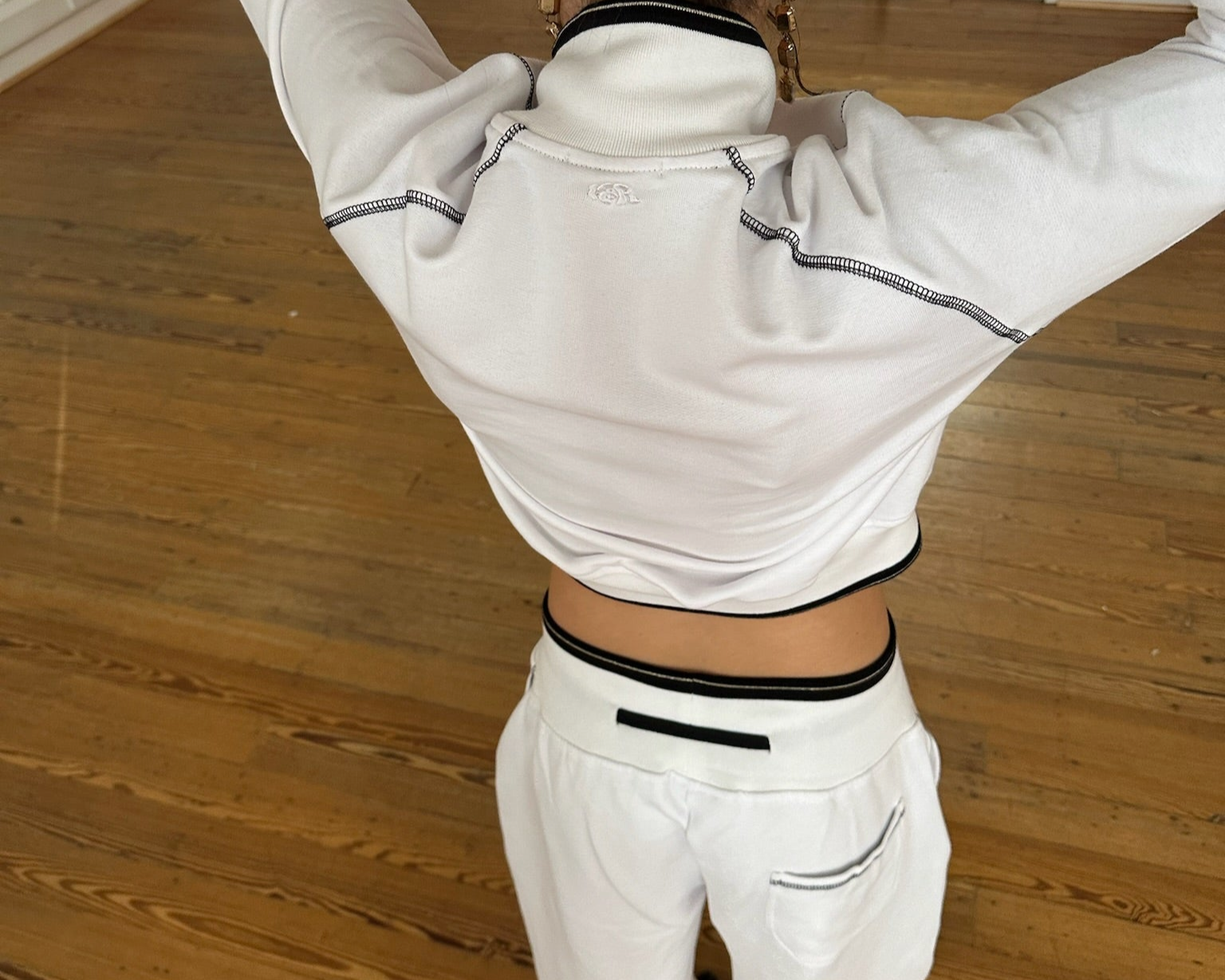 The perfect set for mooching around in. Made from sustainably sourced 100% heavyweight loopback cotton, the Mooch combines comfort with style in a modern, unisex silhouette. Features include drawstring waist & cuffs, contrast stitch, gold detailing and embroidered logo.