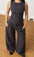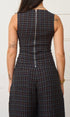A tailored, zip up, sleeveless top with a loose, high boat neckline. Crafted from a 100% Irish heritage linen in a subtle autumnal gingham. Designed to create the perfect 3 piece set with our matching parker trouser & jamie jacket.