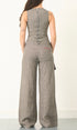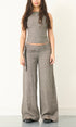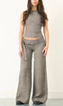 A wide leg trouser in a heavyweight 220gsm irish linen with a subtle dogtooth pattern. Sits mid - low rise with a fully adjustable belted waist. Made from 100% irish linen. Features front & back pockets, an asymmetric zip fly closure, embroidered logo & contrast red zip.