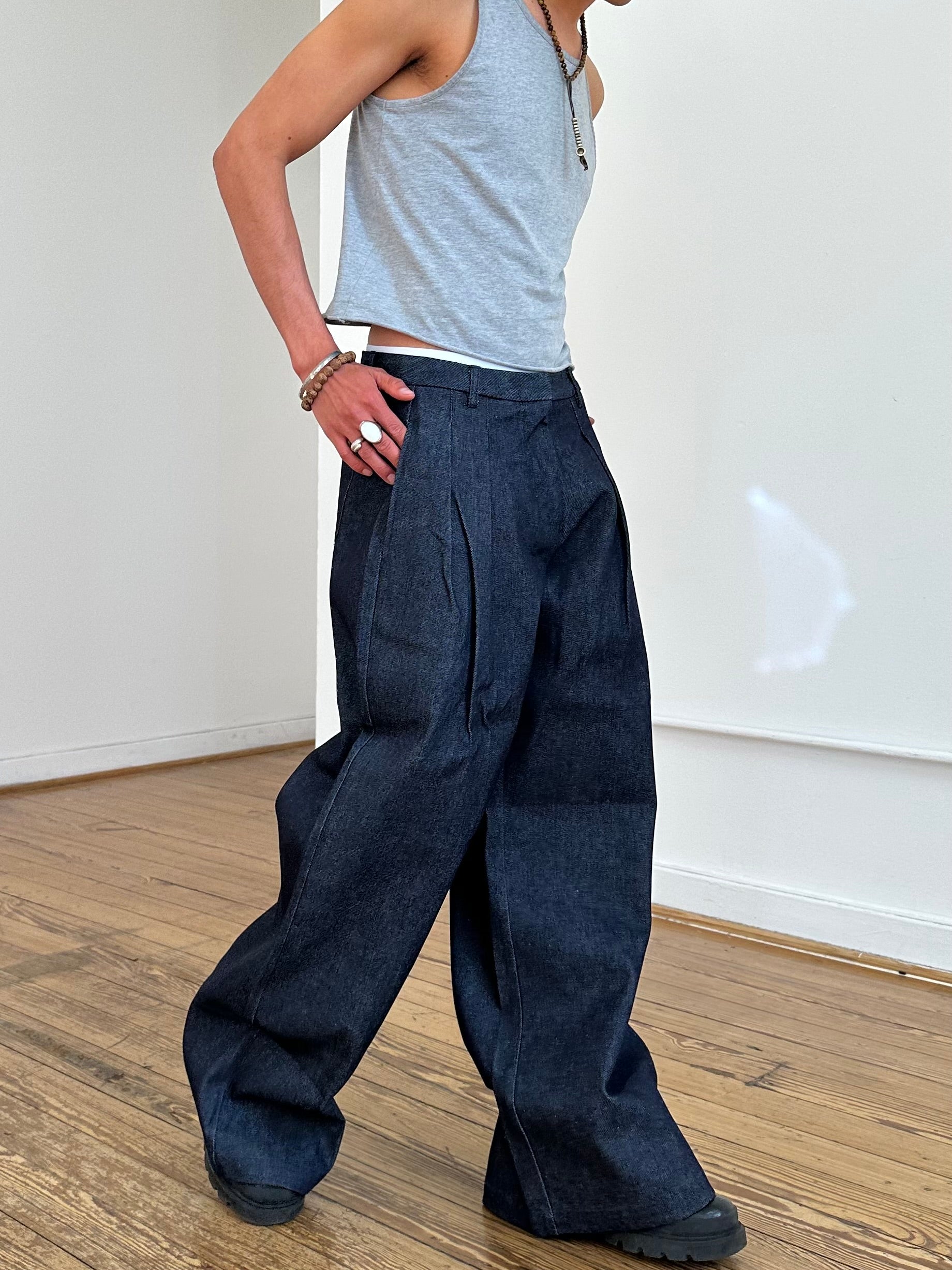 Si vous choisissez de laver votre achat en machine plutôt que de suivre nos instructions d'entretien, veuillez noter que c'est à vos risques et périls. Si vous optez pour un lavage en machine, privilégiez un cycle délicat à froid et retournez le vêtement pour éviter la décoloration. N'oubliez pas que le denim brut n'a pas été pré-rétréci ; un lavage à haute température ou en machine entraînera donc un rétrécissement plus important, notamment en longueur.