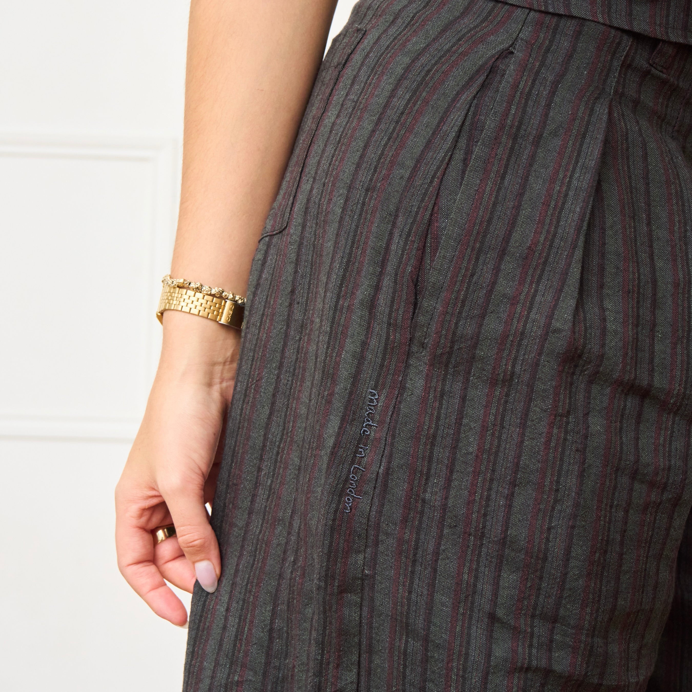 All linen that we use (apart from irish heritage linen) is deadstock. Because of this each roll of fabric that we use can vary slightly in shade and texture. We think this makes each pair extra special. Hardware such as buttons & zips can also vary in shade & colour.