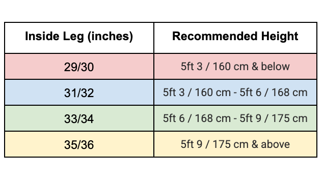 Below is a general guide for inside leg lengths, please also check the product specific guides.