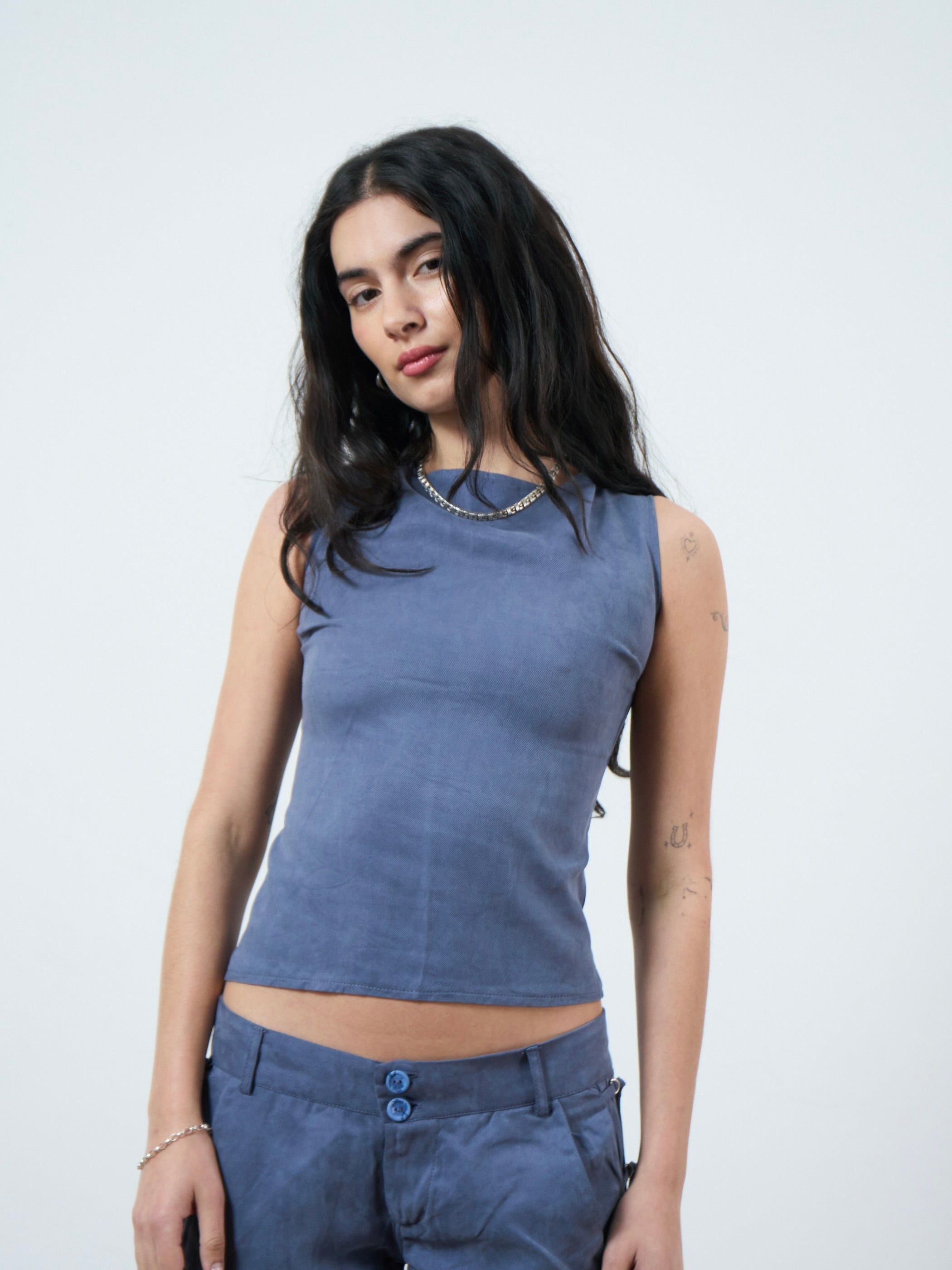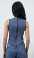 A tailored, zip up, sleeveless top with a high boat neckline. Made from a buttery soft black lyocell. Designed to pair with our peter trouser for the perfect smart but stylish set.