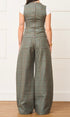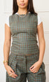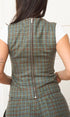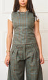 A tailored, zip up, sleeveless top with a loose, high boat neckline. Crafted from a 100% British woven wool in a cedar green check. Fully lined & designed to create the perfect 3 piece set with our parker trouser & jamie jacket.