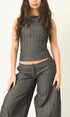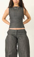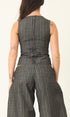A tailored, zip up, sleeveless top with a boat neckline. In a deadstock striped denim. Designed to pair with our new tommy trouser for a fun and stylish striped set.