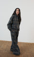 A unisex, zip up, hooded jacket. Made from 100% British woven wool in a grey check and featuring an adjustable toggle waist and hood with Japanese cord. Fully lined with a contrast red lining and finished with our embroidered K&R logo. The perfect set with our matching charlie top & parker trouser.