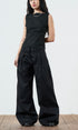 A unisex, wide leg , pleated, black denim jean. Made from raw denim. The perfect smart casual look. Featuring an embroidered handwritten 'made in london' tag. Pair with our charlie for a double denim set.