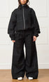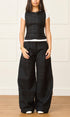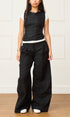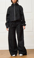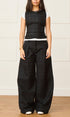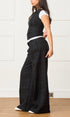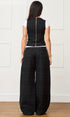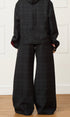 A unisex, pleated, trouser in a wide leg silhouette. Made from 100% British woven wool in a subtle black check. Fully lined and featuring an embroidered handwritten 'made in london' tag. The perfect smart casual look.