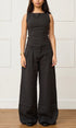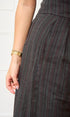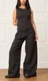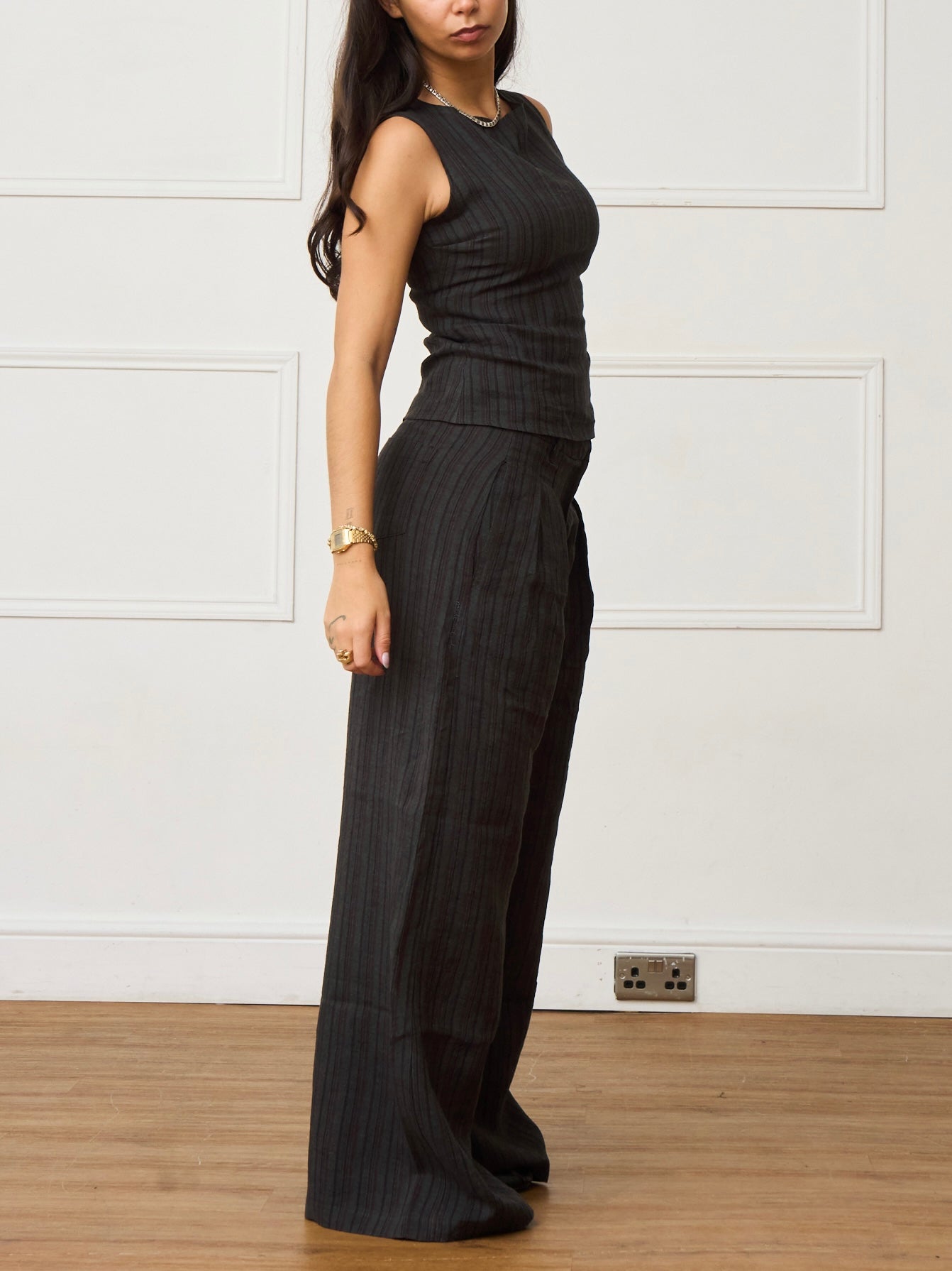 A unisex, pleated, trouser in a wide leg silhouette. Made from 100% Irish Linen in a subtle pinstripe. The perfect smart casual look. Featuring an embroidered handwritten 'made in london' tag.