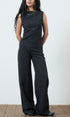 A wide leg, black pinstripe trouser with a fully adjustable belted waist for the perfect fit. An officewear favourite. Sits mid - low rise. Features front & back pockets, an asymmetric zip fly closure and embroidered logo. Pair with our matching charlie top for the perfect office set.
