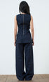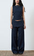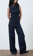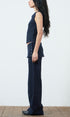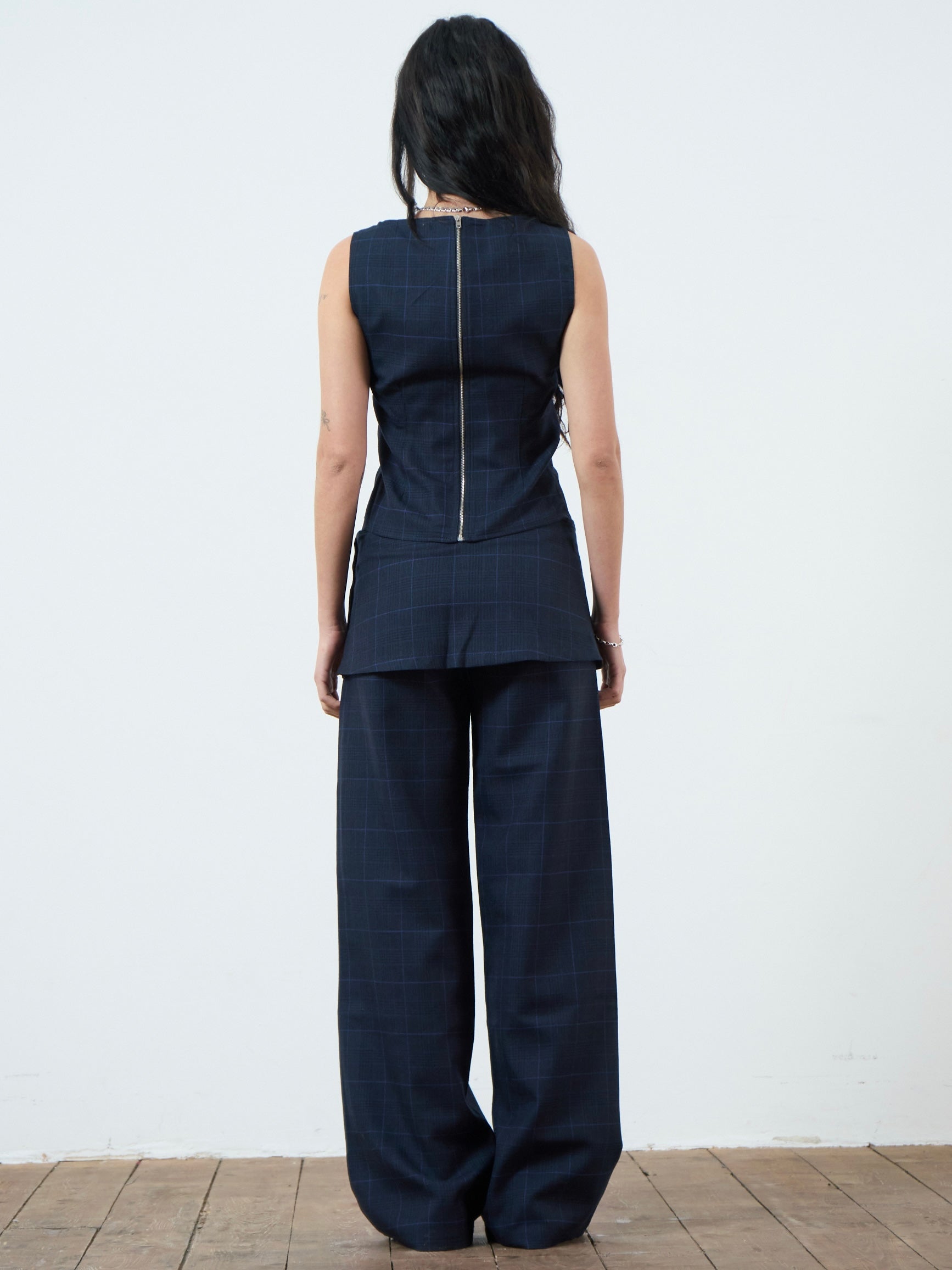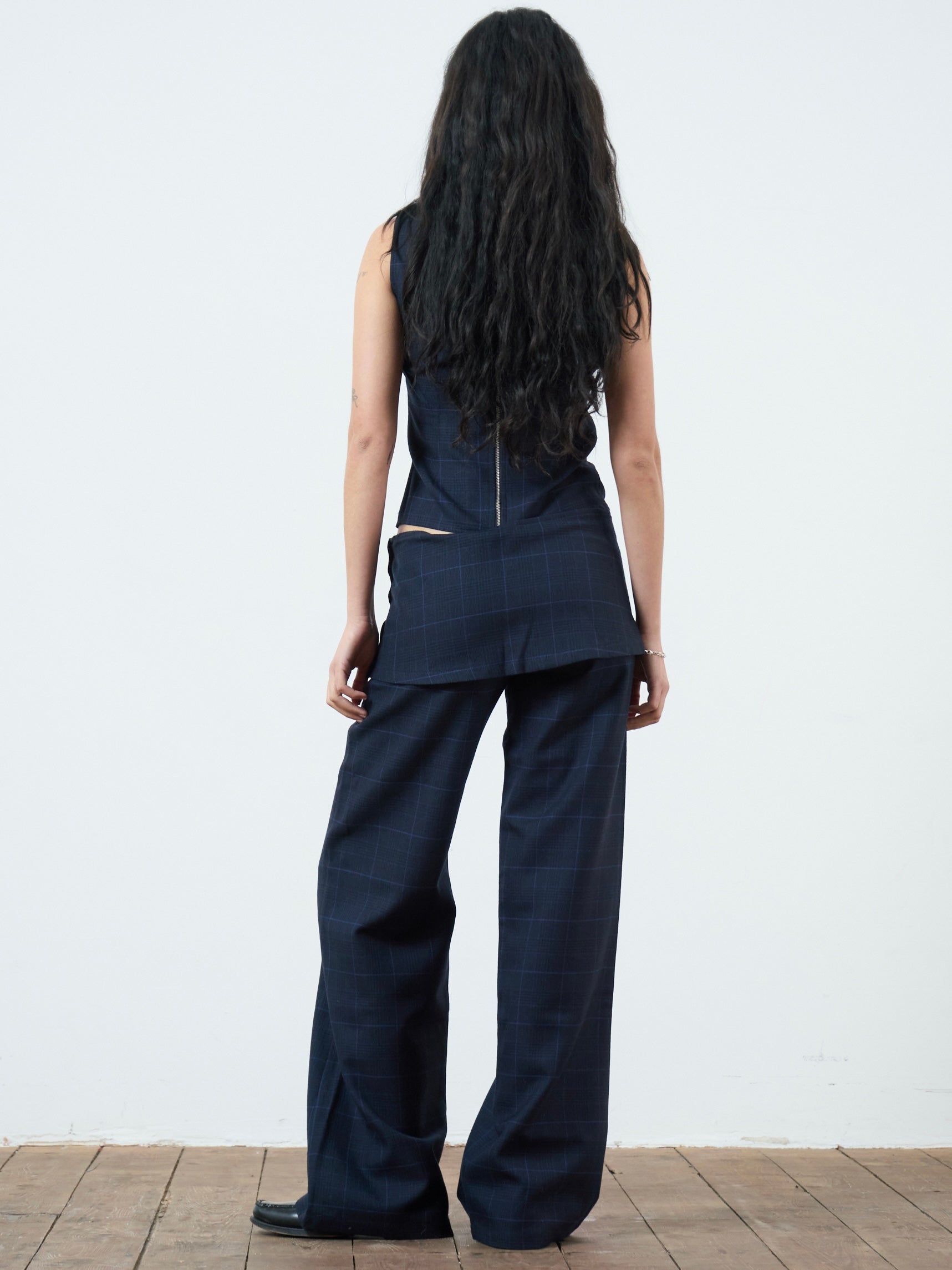 An elevated trouser featuring a mini layered, button up skirt. Crafted from 100% wool in a navy check. Finished with a side zip closure and our K&R engraved buttons. The perfect matching set with the charlie or alex top.