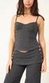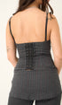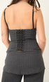 A structured, fully adjustable, underwired corset style top made from 100% irish heritage linen in pinstripe. Designed to sculpt your shape; the sienna top features adjustable bra straps and a classic hook & eye back. Dress it up or layer it over a t-shirt for an easy elevated look. Pairs perfectly with our matching pinstripe shay trouser.