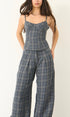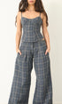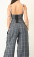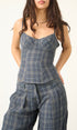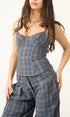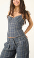 A structured, fully adjustable, underwired corset style top made from 100% irish heritage linen in slate check. Designed to sculpt your shape; the sienna top features adjustable bra straps and a classic hook & eye back. Dress it up or layer it over a t-shirt for an easy elevated look. Pairs perfectly with our matching slate linen parker.