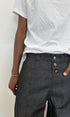 We use raw denim which has not been pre-shrunk or washed - please take this into account when choosing your size as raw denim can shrink when washed, particularly in length. Always follow our care instructions and consider sizing up if you are between sizes.