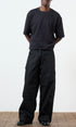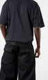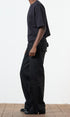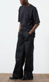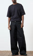 A wide leg, unisex, buckle back, black denim jean. Made from deadstock raw denim. Features a fully adjustable buckle back, front and back pockets and cross over belt loops. Inspired by 90's hip-hop fashion, a seamless blend between smart and casual.